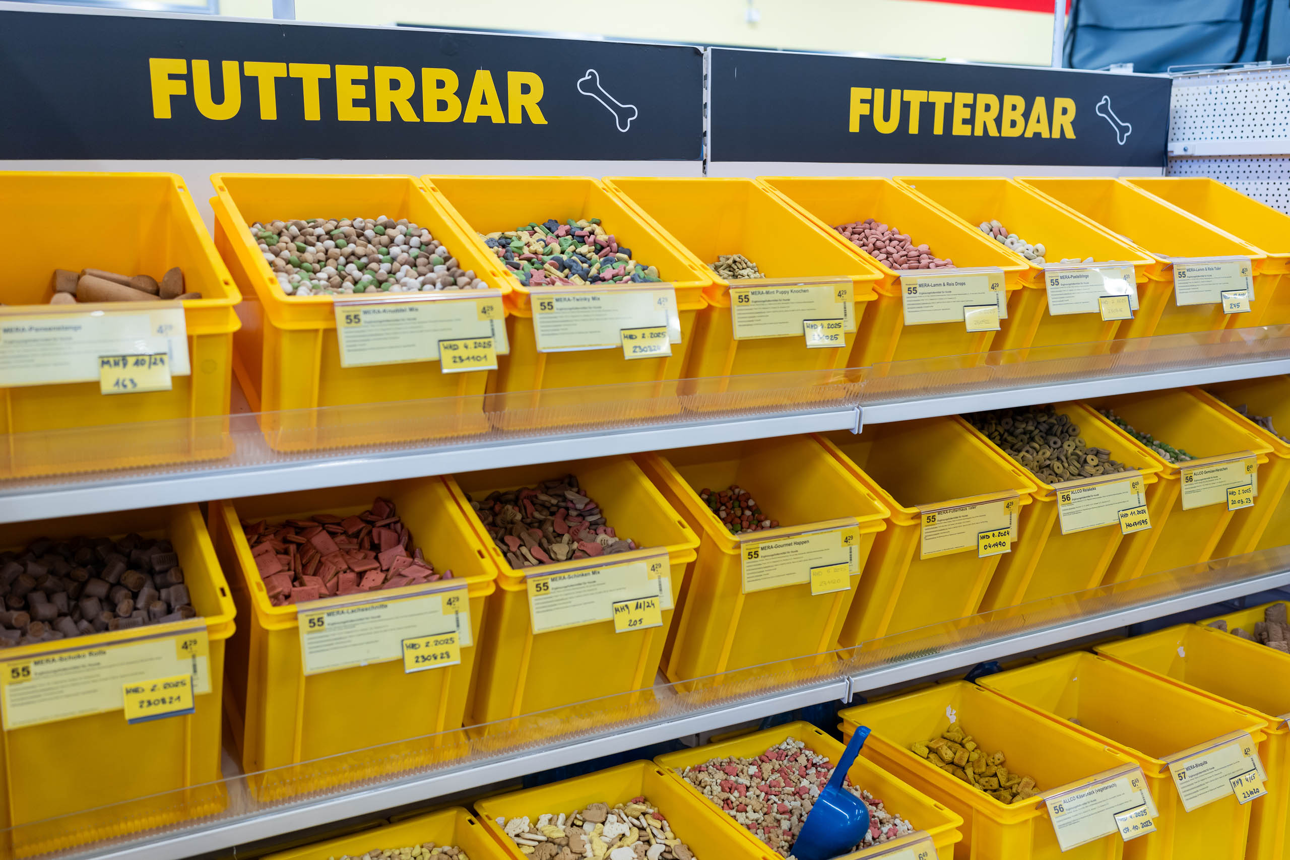 In unseren DAS FUTTERHAUS-Märkten bieten wir Ihnen ein besonders großes Sortiment an hochwertigen Produkten rund um Katze, Hund, Vogel, Fisch, Reptil und Nager. Wir führen eine Vielzahl von Marken, teilweise auch direkt aus Ihrer Region. In jedem unserer Märkte finden Sie zudem die beliebte Futterbar mit einer abwechslungsreichen Auswahl an unverpacktem Futter und gesunden Snacks, individuell und eigenhändig nach den Bedürfnissen Ihres Tieres abfüllbar.